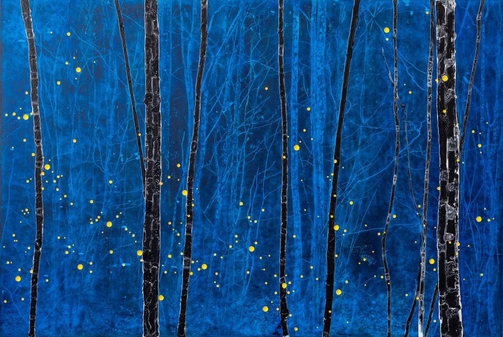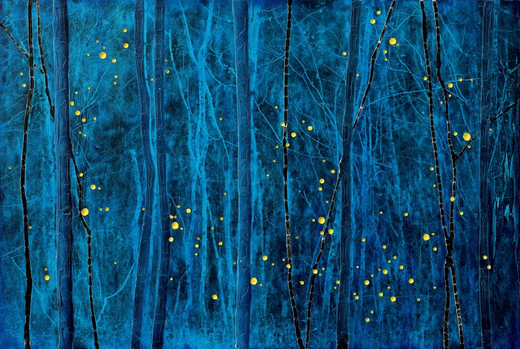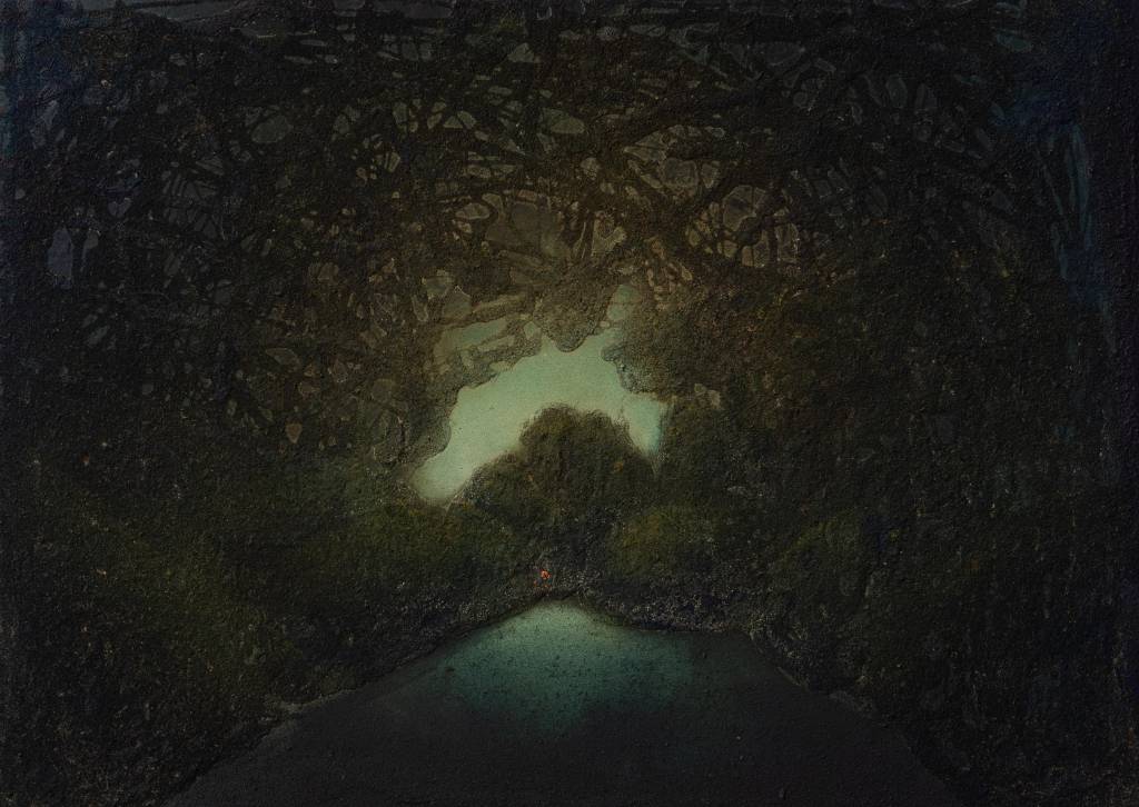 acryl en zaagsel op paneel